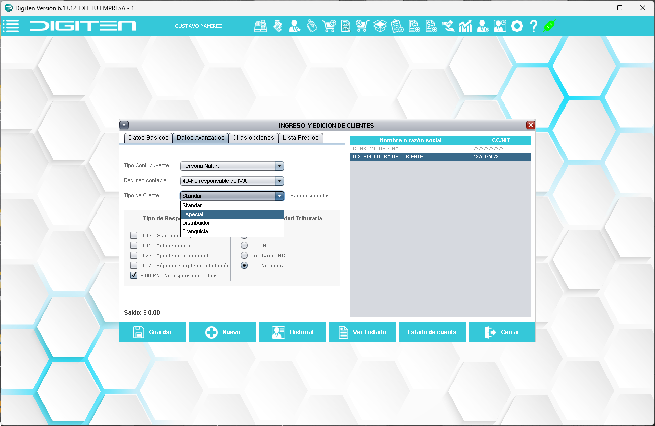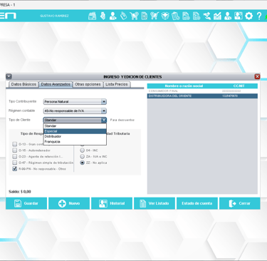 En la sección "Tipo de cliente" selecciona la categoria del cliente, en este ejemplo se selecciona la categoria "Especial"