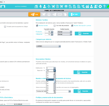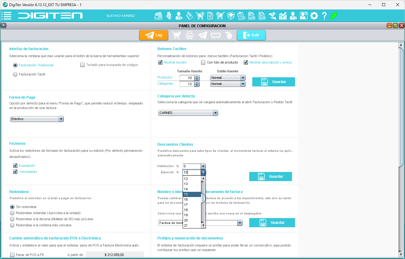 Selecciona el desplegable del porcentaje (En la imagen se selecciona 15) para la categoria Especial, por ejemplo, y dale click en el boton Guardar.