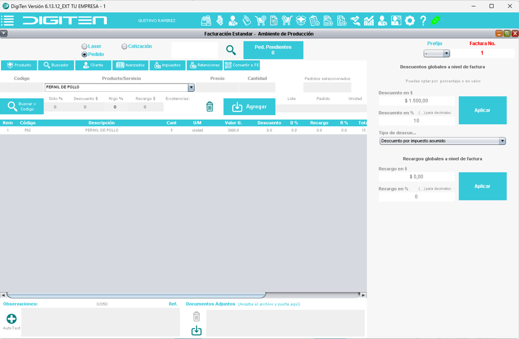Realiza descuentos al final de la factura