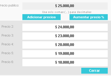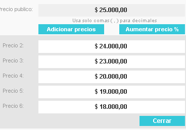 Hasta 6 precios por producto