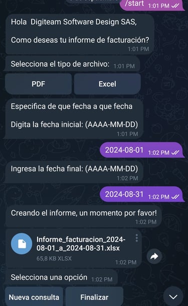 Realiza diferentes operaciones y consultas a tu sistema desde tu telefono movil desde tu cuenta de Telegram