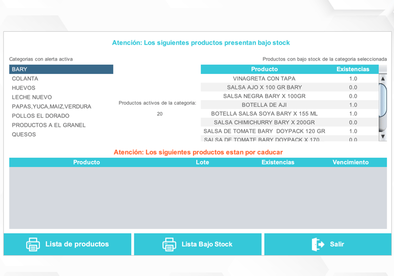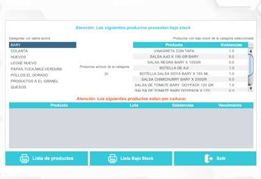 Alertas por bajo stock