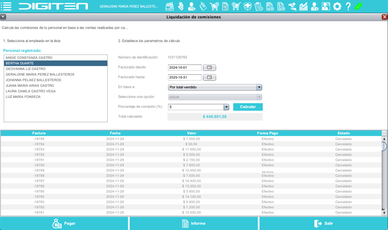 Calcula las comisiones en base a diferentes parametros, cronología e historial de ventas