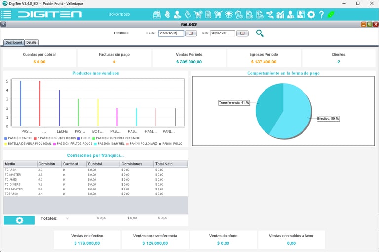 Multiples formas de pago (Efectivo, tarjeta, transferencia, saldo, etc)